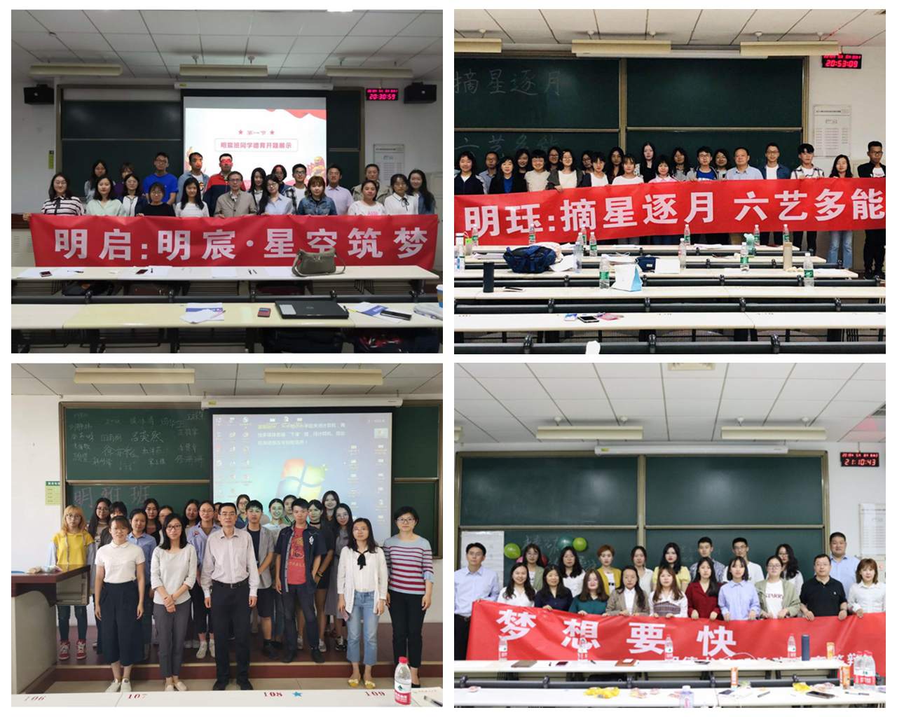 以班级为单位陆续开展德育开题。各班级结合班级特色,在“明启”大主题下,拟定班级主题,如“致青春——我们的初心”“为人生扬起奋斗的风帆”等。开题过程中,同学们认真回顾了过去近一年中学习、生活、工作等方面的收获与得失,梳理总结了上大学以来对大学生活的体会,并立下未来的目标,许下青春誓言。