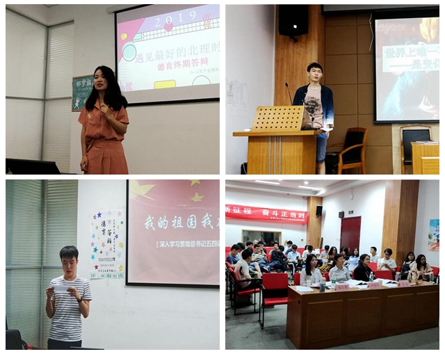 “通过学习习总书记在五四运动100周年上的讲话,我又切实认识了青年在中华民族伟大复兴中扮演的重要角色,毕业后我将在中科院化学所攻读研究生,以提升化学化工专业素养,为祖国建设贡献力量。习近平总书记六点要求的提出,为我们新时代中国青年指明了努力方向。”19821502班李佳珍在学习环节这样分享了自己的感悟。理论学习环节的设置推动实现了用思想理论武装指引毕业学生成长成才的目标。“当睇清世间所有定理又何用再怕,珍惜淡定的心境,苦过后更加清,万般过去亦无味但有领会留下……”10221501班彭懿鑫将最喜爱歌手陈奕迅的四首歌融入到个人德育答辩交流环节中,在歌声中回顾并展望了自己的“大学、青春、人生”。“感谢所有老师们的辛勤付出,感谢事无巨细关心支持我们的辅导员,感谢家人一直以来鼓励包容支持,感谢一起成长的同学,感谢四年来所有的相遇,感谢beat365中文官方网站。”10211501班精心录制“一路走来,感谢有你”主题视频,言语朴素却又在真情实意中感谢父母老师,祝福同学室友,感恩青春年华。