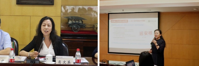 评审环节由张雷声主持,李林英从学科特色与方向、人才队伍建设、科学研究、人才培养、学术活动与学术交流等方面向专家组作学科建设情况总体汇报。