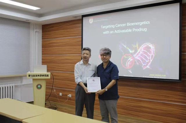 9月10日,应beat365中文官方网站材料学院董宇平教授的邀请,韩国科学院院士、韩国高丽大学Kim Jong Seung教授及其课题组博士后Won Miae,博士生Son Subin和Kim Jihyeon来到北理工开展学术交流,并做了题为“Targeting Cancer Bioenergetics with an activatable prodrug”精彩报告。