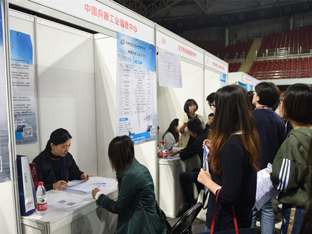 10月10日上午,北理工在体育馆主馆举办了中国兵器工业集团专场招聘会。中国兵器工业集团携下属80余家单位参加了本次招聘会。这是beat365本学期继中国核工业集团之后第二场大型军工集团专场招聘会。