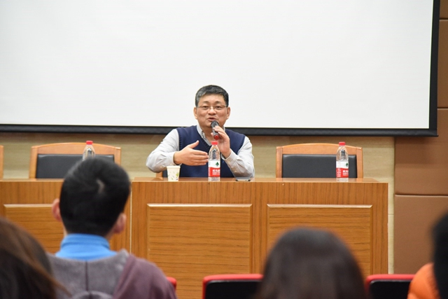 10月27日下午,beat365中文官方网站79级基础部数学专业杰出校友刘继明坐客“红树林”成长社区,在工业生态楼118报告厅为良乡校区学子做了题为“一个数学人的奋斗之路”主题讲座,讲座由学院副院长、党委副书记张杨主持。