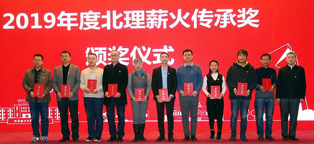 杨志宏为2019年度北理薪火传承奖校友颁发证书。