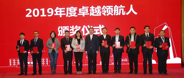 张军为2019年度卓越领航人颁发证书、奖杯。