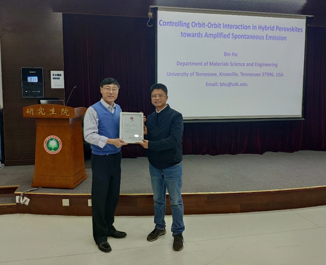 【百家大讲堂】美国田纳西大学胡斌教授讲述“3维和2维钙钛矿光伏和发光器件中自旋轨道耦合效应”