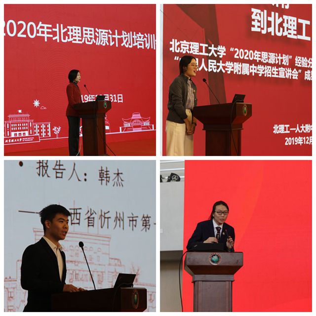 2019年北理思源奖团队代表、中国人民大学附属中学思源团团长张牧青同学和山西省忻州市第一中学思源团团长韩杰同学分别做了精彩的经验分享。北理招生宣传协会负责人刘周密同学介绍了北理招协针对思源计划开展的后续支撑保障。培训会后,各思源团有序地领取了各类招生宣传资料。