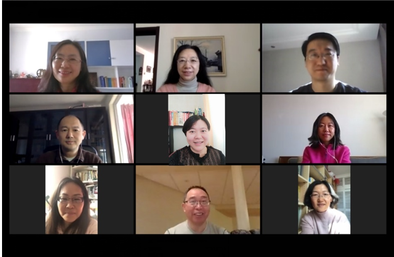 《心理健康》公共课教学团队疫情期间视频会议集体备课(从左至右分别为安芹、贾晓明、苏瑞锐、李波、王浩、李旭珊、王颖、丁亚平、包海芹)