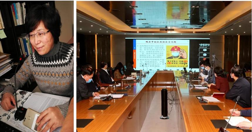 宋宪萍线上教学(左图),校领导在线巡查试听《公共经济学》(右图)