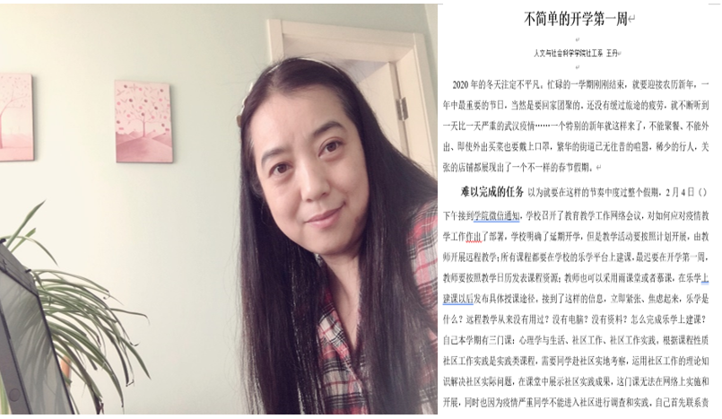 开课第一周,王丹有多门课程线上开课,从星期一到星期五,每天都会遇到很多同学遇到各种各样的技术问题,王丹一方面需要安抚同学学习,另一方面需要联系平台工作人员解决。“学校各部门的老师,真的都非常辛苦,假期期间都是在超负荷工作,甚至很晚的时间都有老师在问各种问题,而每次他们都是非常耐心的解答。疫情期间的网络教学,注定是不简单的,每个人都在用自己的方式努力工作,战胜病毒。”