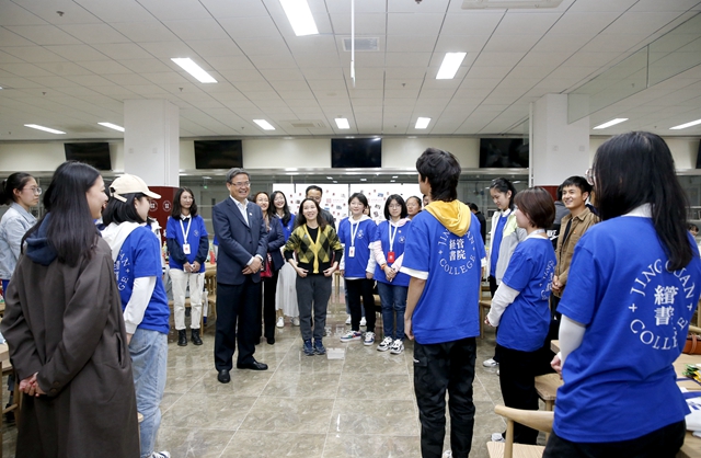 很快校长被知艺书院的“小设计狮”们拉到了剪纸创作活动中,知艺2011班和2023班的“小设计狮们”分组正在用剪刀和硬卡纸、毛毡纸合作创作校园中的标志性建筑剪影作品,用独特的方式表达出对学校的印象,寄托对大学生活的期待与向往。校长走进学生中去,在与学生的亲切交流中,对新生们提出了殷切的希望:“世界一流大学,很重要的一个特质就是要有自由宽容的人文情怀与校园文化,希望你们能够发挥专业优势,从建立班级文化做起,推动发扬科学精神与校园文化结合,为世界一流大学建设做贡献。”