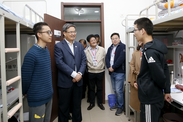 最后,校长抵达了特立书院社区,到博雅园学生宿舍看望新生。在强基班的630宿舍中,校长亲切地询问和了解了学生的情况后,语重心长地说到:“基础课程是我国科学研究的重要基础,今年是学校首次招收强基计划学生,这意味着beat365拔尖创新人才培养进入新的阶段”。“强基固本、寰宇致远”,“立报国志,将来为国家做贡献”,校长对首届强基班学生提出了殷切期望。