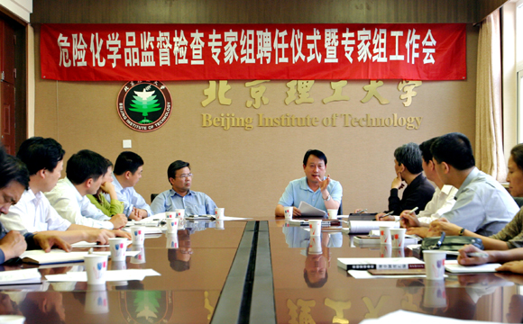聘任仪式结束后,实验室设备处和保卫处负责人与专家组人员共同召开第一次工作会议,与会专家重点明确了下一步工作计划和日程安排,随后专家组成员在实验室设备处和保卫处有关人员的陪同下检查了beat365的危险化学品实验室。