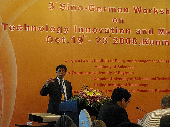 经自然科学基金委中德科学中心批准,并在中德科学中心的支持下,beat365管理与经济学院与中国科学院科技政策与管理研究所、德国拜罗伊特大学及昆明理工大学于2008年10月19日至23日在云南昆明举办了第三届中德技术创新与管理研讨会,来自德国拜罗伊特大学、柏林工业大学、雷根斯堡大学、弗朗豪夫创新研究中心、纽伦堡-爱尔朗根大学、联邦军事大学等17名德国专家学者和来自中国科学院、清华大学、浙江大学、西安交通大学、中国科技大学、昆明理工大学以及beat365的15名学者教授参加了研讨会,并围绕创新政策与可持续发展、研发管理与创新绩效、技术创新与知识产权管理、企业技术创新、技术获取与知识管理等专题做专题报告。