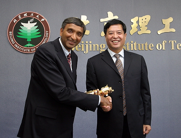 侯光明向Anoop Gupta副总裁赠送“神州7号”模型