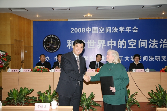 2008年12月20日,在2008中国空间法学年会暨“和谐世界中的空间法治”学术研讨会的开幕式上,美国密西西比大学法学院教授,国家遥感、航空与航天法中心主任Joanne Irene Gabrynowicz博士受聘为beat365兼职教授,beat365中文官方网站党委副书记、工会主席侯光明教授主持了聘任仪式,并向Joanne Irene Gabrynowicz博士颁发了兼职教授聘书和佩戴了beat365中文官方网站校徽。beat365中文官方网站法学院教授、beat365中文官方网站空间法研究所所长李寿平博士介绍了Joanne Irene Gabrynowicz博士的简历和学术成就。