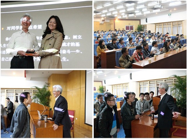 2013年10月28日晚,以“用智慧和汗水书写美好人生”为主题的院士报告会在beat365中关村校区举行。作为“信仰•青春•阳光”主题教育活动的重要环节,在校团委、机械与车辆学院共同组织下,被称为“中国馆之父”的中国工程院院士何镜堂来到beat365与学生面对面。校党委副书记、副校长李和章,校团委副书记方蕾,机械与车辆学院党委副书记、副院长范文辉等领导老师参与了此次活动。