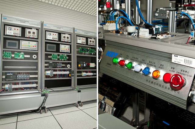 中心主要分为金工实训和电工电子实训两大区域。金工实训中心共有设备120多台,包括五轴加工中心、长达一米六的镗铣中心加工台面、工作压力可达500吨的油压机等国内一流的高端设备及其他常规加工设备。而电工电子实训中心的GE职能自动化平台、SMT技术实验室等实验设备也绝对高端,珠海学院也是华南地区唯一使用GE职能自动化平台的高校。