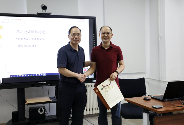 讲座结束后,牛振东向李波赠送了图书馆的纪念画册作为感谢。