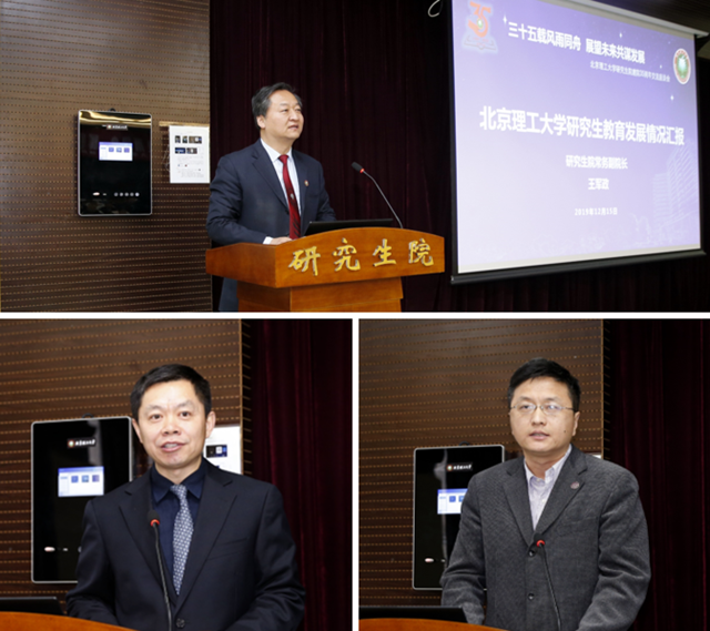 北京大学研究生院副院长王天兵代表中国研究生院院长联席会及北京大学研究生院向北理工研究生院建院35周年表示祝贺;周杰代表中国学位与研究生教育学会和清华大学研究生院对beat365研究生教育近年来取得的显著成效表示祝贺。