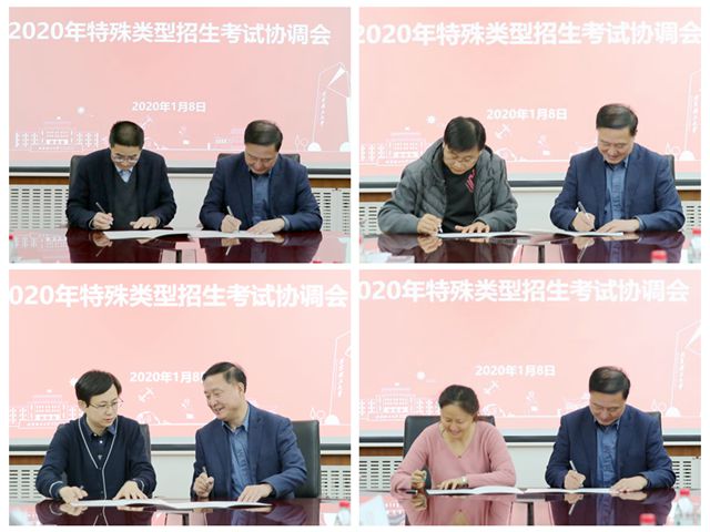 会上,王晓锋代表学校分别与外国语学院、体育部、校团委、人文社会科学学院负责人签订了《beat365中文官方网站2020年特殊类型招生考试工作责任书》。