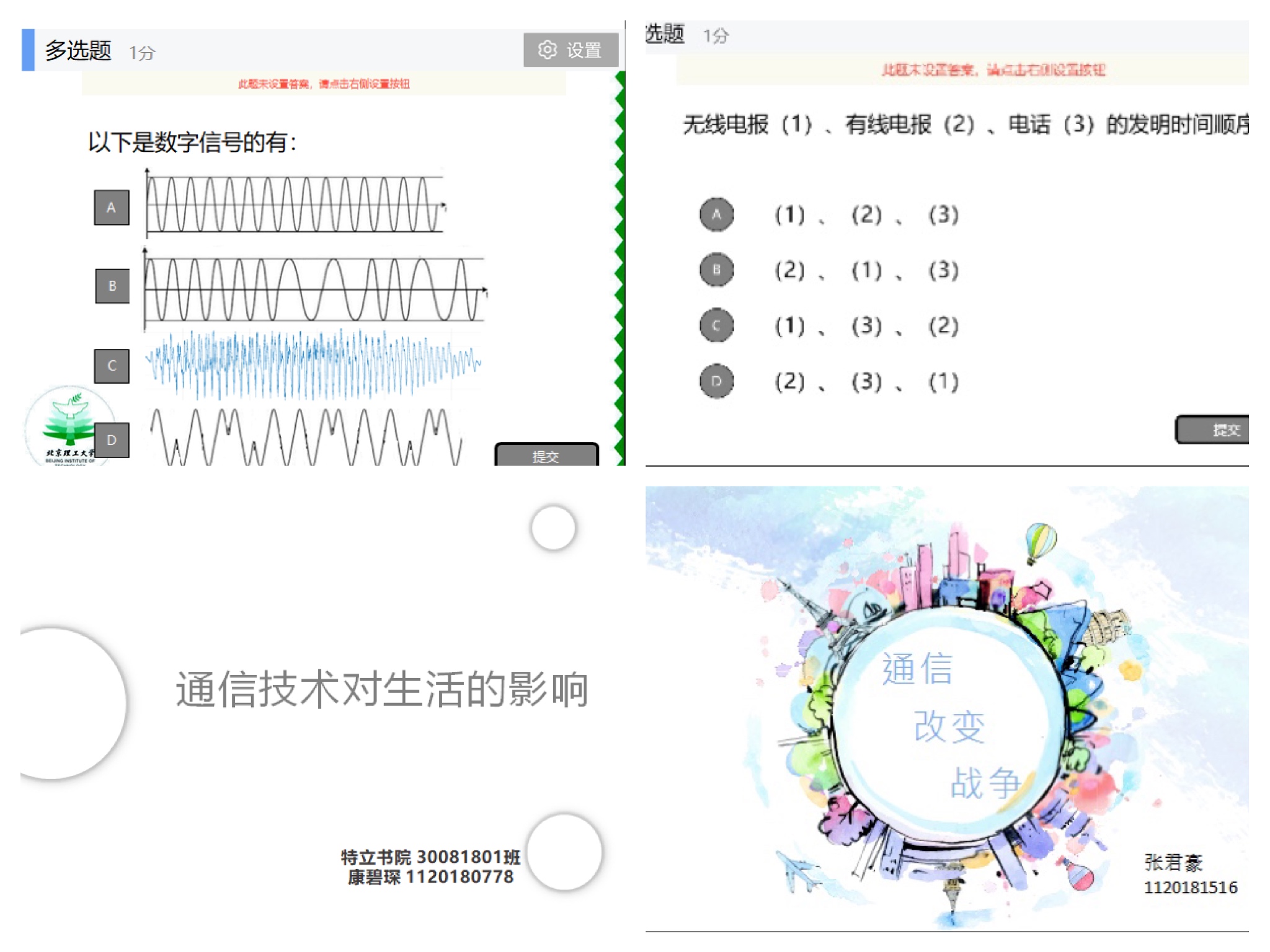 学生作业实例与线上教师提问实例