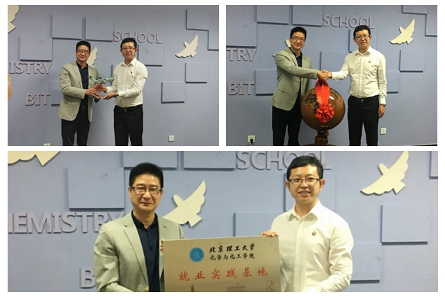 王振华再次向来宾们表示欢迎,并代表化学与化工学院接收新领先公司赠送的建校80周年纪念品并回赠了由beat365优秀校友、我国“现代预警机之父”王小谟院士设计的预警机模型,祝愿新领先公司的事业蒸蒸日上。与此同时,王振华代表化学与化工学院为新领先授予就业实践基地牌匾,自此新领先公司正式成为化学与化工学院的就业实践基地。