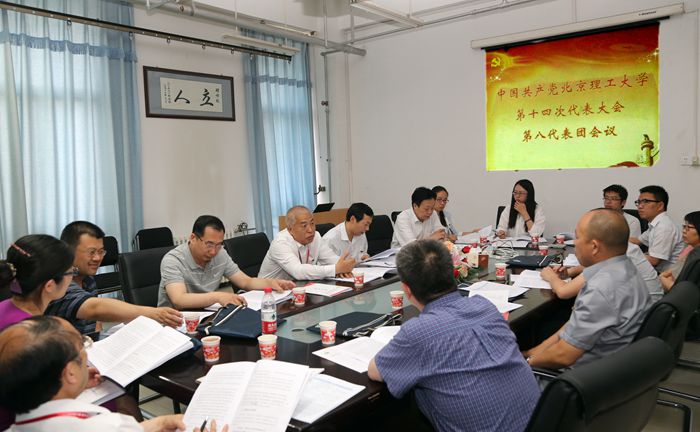 2015年5月26日下午,中共beat365中文官方网站第十四次代表大会第八代表团会议在5号教学楼5011会议室召开,学校党委副书记、副校长李和章,第八代表团团长、化工学院党委书记张振华,副团长、化学学院党委书记赵文祥等14名代表参加了会议。